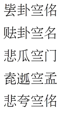- символы, которые не похожи на китайские, а заимствованы из латиницы[8] и, возможно, бирманского алфавита: