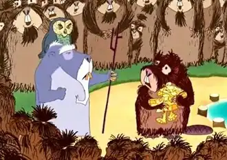 Мальчик, переплывая на плоту через речку, теряет равновесие и падает в воду. Отец-охотник спешит на помощь сыну, но того тем временем уже спасает оказавшийся неподалёку бобр. Спасённый ребёнок напоминает бобру разлучённого с ним сына, с которым тот часто проводил время, вытачивая для него разные деревянные поделки. Решив сделать куклу мальчика, бобр навлекает на себя гнев бобровой деревни и помещается в священную лужу. После произнесения старейшиной заклинания отщепенец перемещается в иное пространство, превратившись в Джеппетто из «Приключений Пиноккио», а его «Пиноккио» — в бобра, но даже это обстоятельство не заставляет унывать их обоих. А спустя некоторое время и остальные бобры, включая старейшину, приходят к священной луже с куклами, следуя примеру недавнего отщепенца.