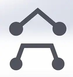 В прямо-угловом варианте только один угол, центр тяжести расположен по центру, поэтому такая конструкция имеет более низкую проходимость на участках с большим углов наклона поверхности. Этот недостаток может быть частично компенсирован путём увеличения угла(110° — 160° вместо 90°).