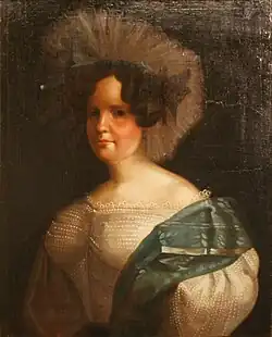 Первая жена (с 30 января 1825 года)[8] — Елизавета Александровна Муханова (09.01.1803[9]—23.10.1836), дочь Александра Ильича Муханова (1766—1816) от брака его с Натальей Александровной Саблуковой (1779—1855); сестра декабриста Петра Муханова. Родилась в Петербурге, крещена 18 января 1803 года в Сергиевском всей артиллерии соборе при восприемстве дяди С. И. Муханова и бабушки Е. А. Саблуковой. Её «Дневник 1826—1827 годов» об обстановке в Москве после восстания декабристов и о встрече с братом в Петропавловской крепости был опубликован в журнале Голос минувшего (1920—1921. С. 98—113). Умерла при родах. Дети: