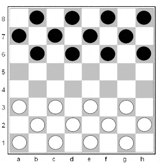 - Все шашки, участвующие в партии, выставляются перед началом игры на доску. Далее они передвигаются по полям доски и могут быть сняты с неё в случае боя шашкой противника.