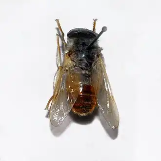 Крупные мухи, длиной от 19 до 26 мм, похожие на шмелей. Глаза чёрные или синие, без полосок и в очень длинных густых волосках. У самок глазковый бугорок не выражен, у самцов он находится ниже уровня глаз и покрыт волосками. Голени средних задних ног утолщены в длинных волосках. Средняя часть крыльев буровато затемнённая[1].