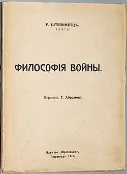• Штейнметц Р. Философия войны / Пер. с нем. Г. Абрамова. — Петроград: «Образование», 1915. — 328 с.