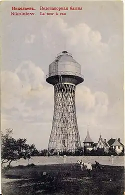 Была построена в 1907 году и функционировала до 1944 года, когда была взорвана отступавшими немецкими войсками[2]. После освобождения Николаева башня была успешно восстановлена. Использовалась вплоть до середины 1958 года, пока не ввели в эксплуатацию Ингулецкий водовод[2]. Ныне башня имеет статус памятника истории и культуры местного значения.