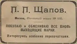 Пётр Петро́вич Ща́пов (1870—1939) — российский купец, деятель Московского купеческого собрания и Московской городской думы, филателист.