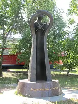 | Защитившим от атома. Памятник участникам ликвидации радиационных аварий, катастроф и испытаний ядерного оружия. Парк Победы, Саратов. Торжественное открытие 27 декабря 2011г.[7] | |