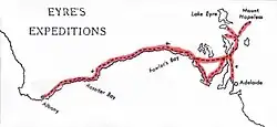 В 1840 году Эйр предпринял новое путешествие, задачей которого было проведение разведки пути к Перту на западном побережье континента. Во время следования он обнаружил, что озеро Торренс, за год до того весьма многоводное, практически полностью высохло. Пройдя на север ещё дальше, чем в предыдущий раз, Эйр нашёл ещё одно озеро, впоследствии названное его именем. Вернувшись к заливу Спенсер, по пути осмотрев систему озёр Эверард—Грегори, Эйр пересёк полуостров (который также был назван его именем), на котором обнаружил невысокий хребет Голер, и вышел к Большому Австралийскому заливу в районе бухты Стрики. Оттуда Эйр двинулся вдоль побережья на запад. После трудного путешествия, осложнённого крайним недостатком пресной воды, он 30 июня 1841 года вышел к посёлку Олбани в бухте Кинг-Джордж на южной оконечности Западной Австралии, откуда морем вернулся в Аделаиду.