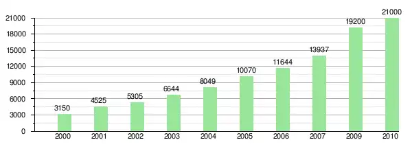 | год | 2000 | 2001 | 2002 | 2003 | 2004 | 2005 | 2006 | 2007 | 2008 | 2009 | 2010 | 2011 |