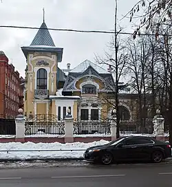 - ↑ Виталий Тарков. Увидеть интерьеры особняка московского макаронного магната. Фасад знаменитого дома украшен лепным орнаментом, тремя панно с пейзажами. Крыша башенки увенчана шпилем-иглой с флюгером в виде герба Москвы. Энциклопедия «Моего района» (8 сентября 2009). Дата обращения: 17 июня 2015. Архивировано из оригинала 3 июня 2014 года.