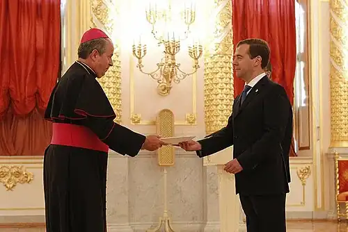 2. Назначен новый Апостольский нунций в Российской Федерации. Дата обращения: 19 февраля 2011. Архивировано 28 ноября 2011 года.