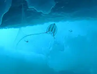 - ↑ Mann C. G. Bioluminescence of gelatinous zooplankton in the Greenland and Barents Seas: nightlights in the land of the midnight sun // Proceedings of the American Academy of Underwater Sciences annual scientific diving symposium 28 September — 1 October 1989 / M. A. Lang, W. C. Jaap. — Woods Hole, Massachusetts, USA: Wood Hole Oceanographic Institution, 1989.