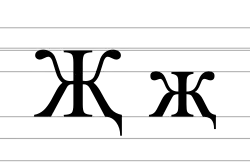 | Буква кириллицы Ж с нижним выносным элементом | |||||||||||||||||||||||