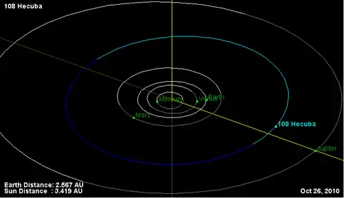 (108) Гекуба (лат. Hecuba) — астероид внешней части главного пояса, принадлежащий к светлому спектральному классу S. Орбита астероида близка к орбитам астероидов семейства Гигеи, но сам он вряд ли входит в его состав, так как имеет силикатный состав, в то время как сама (10) Гигея представляет собой тёмный астероид класса C.