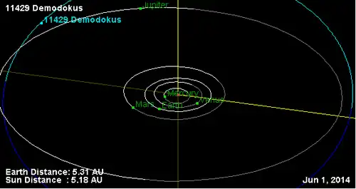 - Орбита астероида Демодок и его положение в Солнечной системе