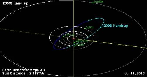 - Орбита астероида Кэндруп и его положение в Солнечной системе