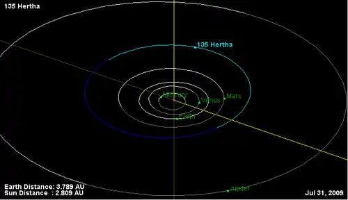 (135) Герта (нем. Hertha) — астероид главного пояса, который по орбитальным параметрам близок к астероидам семейства Нисы, но не входит в него, поскольку принадлежит к железным астероидам спектрального класса M, в то время как в данное семейство входят астероиды класса S и класса F. Данные спектроскопического анализа говорят о возможности наличия водных силикатов на данном астероиде.