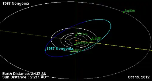 - Орбита астероида Нонгома и его положение в Солнечной системе