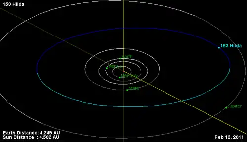 ![]() Астероид Хильда 14,2m на фоне звёзд | |