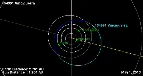 - Орбита астероида Винчигуэрра и его положение в Солнечной системе
