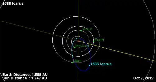 (1566) Ика́р (др.-греч. Ἴκαρος) — небольшой околоземный астероид из группы аполлонов, который характеризуется крайне вытянутой орбитой. Он был открыт 27 июня 1949 года немецким астрономом Вальтером Бааде в Паломарской обсерватории США и назван в честь Икара, персонажа древнегреческой мифологии, известного своей необычной смертью[2].