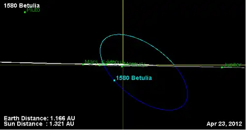 - Орбита астероида Бетулия и его положение в Солнечной системе