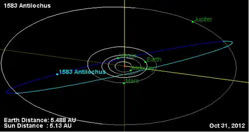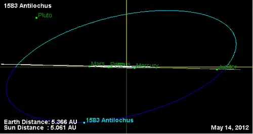 - Орбита астероида Антилох и его положение в Солнечной системе