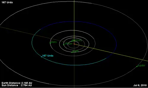 Орбита астероида Урда и его положение в Солнечной системе