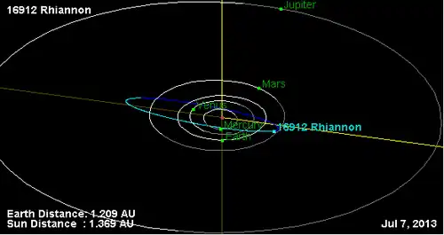 - Орбита астероида Рианнон и его положение в Солнечной системе