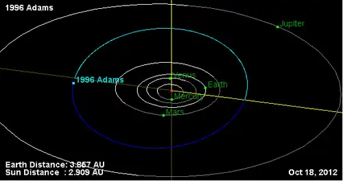 - Орбита астероида Адамс и его положение в Солнечной системе
