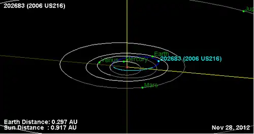 - Орбита астероида 2006 US216 и его положение в Солнечной системе