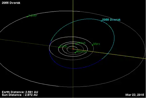 - Орбита астероида Дворжак и его положение в Солнечной системе