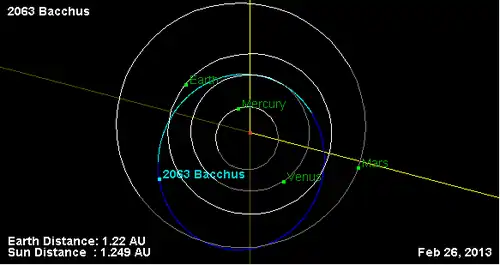 - Орбита астероида Бахус и его положение в Солнечной системе