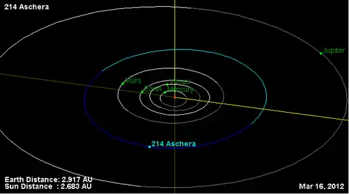 (214) Ашера (лат. Aschera) — небольшой астероид главного пояса астероидов, принадлежащий к редкому спектральному классу E, вследствие чего его поверхность отражает более половины падающего на неё света, для сравнения: альбедо поверхности Луны составляет 0,12, что в 4 раза меньше. Движется по почти круговой орбите. Был обнаружен 29 февраля 1880 года австрийским астрономом Иоганном Пализой в обсерватории города Пула в Хорватии и назван в честь Ашеры, западносемитской богини плодородия[1].