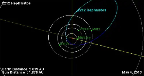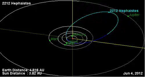 - Орбита астероида Гефест и его положение в Солнечной системе