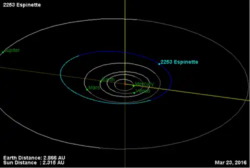 (2253) Эспинетте (лат. Espinette) — небольшой астероид, который относится к группе астероидов, пересекающих орбиту Марса и принадлежащий к светлому спектральному классу S. Он был открыт 30 июля 1932 года бельгийским астрономом Жоржем ван Бисбруком в обсерватории Уильямс-Бэй и назван в честь дома первооткрывателя в Уильямс-Бэй[2].
