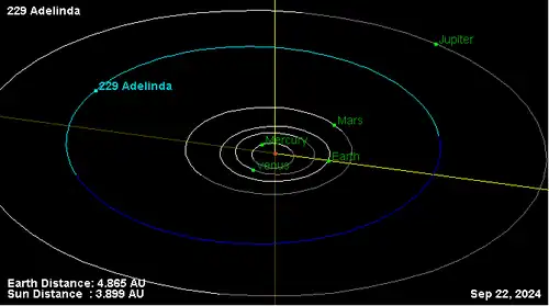 Орбита астероида Аделинда и его положение в Солнечной системе