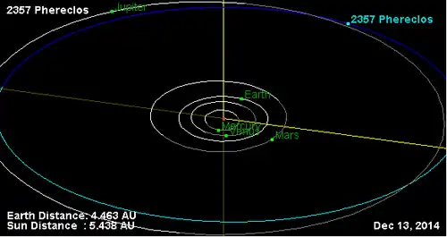 Орбита астероида Ферекл и его положение в Солнечной системе