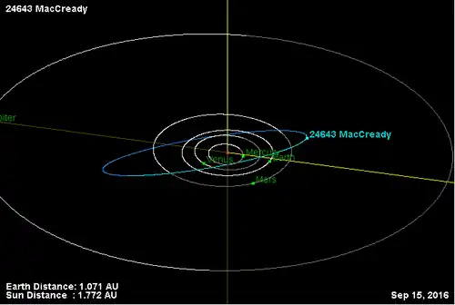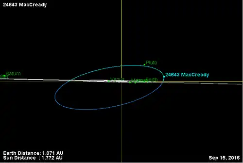 - Орбита астероида Маккриди и его положение в Солнечной системе