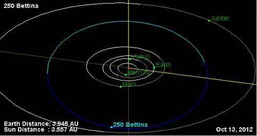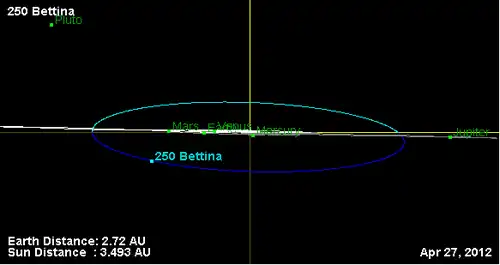 - Орбита астероида Беттина и его положение в Солнечной системе
