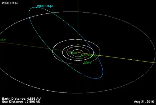 - Орбита астероида Хопи и его положение в Солнечной системе