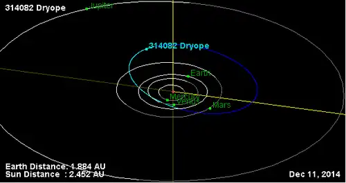 - Орбита астероида Дриопа и его положение в Солнечной системе