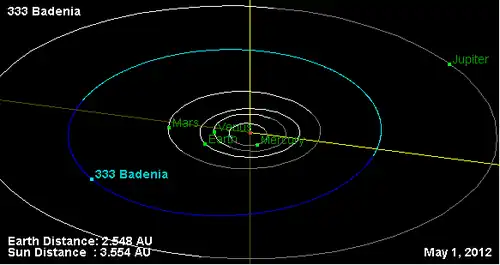(333) Бадения (нем. Badenia) — астероид главного пояса, который был открыт 22 августа 1892 года немецким астрономом Максом Вольфом в обсерватории Хайдельберга и назван в честь региона Баден, на юго-западе Германии[1].