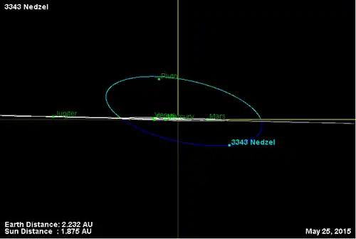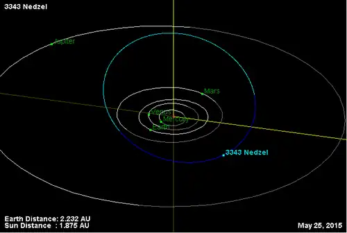 - Орбита астероида Недзел и его положение в Солнечной системе