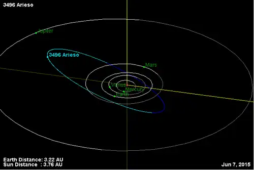 - Орбита астероида Ариесо и его положение в Солнечной системе