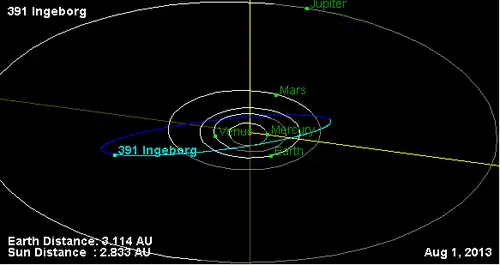 - Орбита астероида Ингеборг и его положение в Солнечной системе