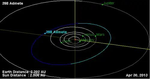 (398) Адмета (др.-греч. Ἀδμήτη) — небольшой астероид главного пояса, который принадлежит к тёмному спектральному классу C. Он был открыт 28 декабря 1894 года французским астрономом Огюстом Шарлуа в обсерватории Ниццы и назван в честь Адметы, героини древнегреческой мифологии[1].
