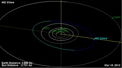 - Орбита астероида Хлоя и его положение в Солнечной системе