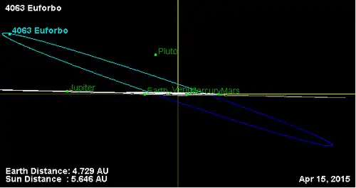 - Орбита астероида Эвфорбо и его положение в Солнечной системе