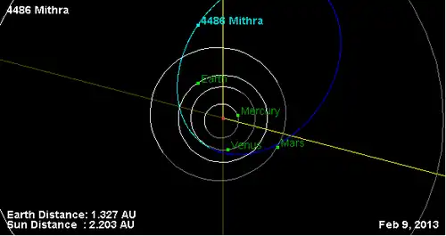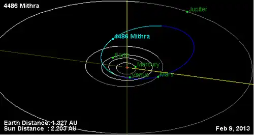 (4486) Митра (др.-инд. Mitrá, авест. Miθra) — околоземный астероид из группы аполлонов, который характеризуется очень вытянутой орбитой с большим эксцентриситетом, из-за чего в процессе движения вокруг Солнца он пересекает орбиту не только Земли, но и Марса, в перигелии вплотную подходя к орбите Венеры. Астероид был открыт 22 сентября 1987 года астрономами Эриком Эльстом, Владимиром Шкодровым в обсерватории Рожен и назван в честь Митра, божество индоиранского происхождения[2].