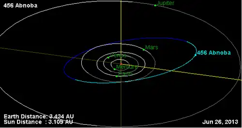 (456) Абноба (лат. Abnoba) — астероид из группы главного пояса, который принадлежит к светлому спектральному классу S. Он был открыт 4 июня 1900 года немецкими астрономами Максом Вольфом и Фридрихом Швассманом в обсерватории Хайдельберг и назван в честь Абнобы, гальской богини лесов и рек[1].